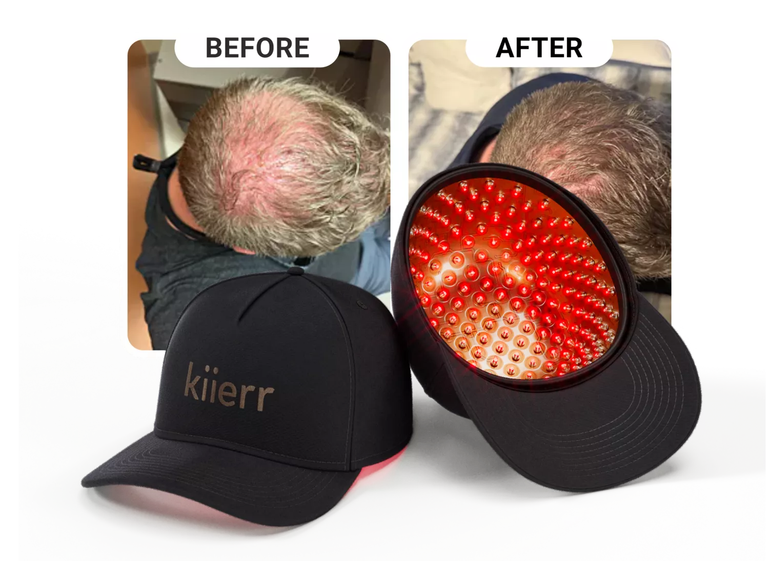An impressive before/after from real customers on how Kiierr Laser Caps played a key role in their hair restoration.