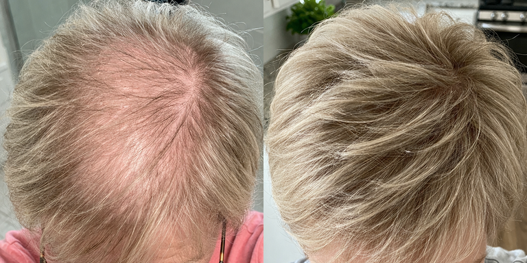 Noticeable menopause hair thinning brought me to Kiierr's hair cap, after several months of usage 3x a week, I started to notice my hair growing back as did my friends and even hair stylist!