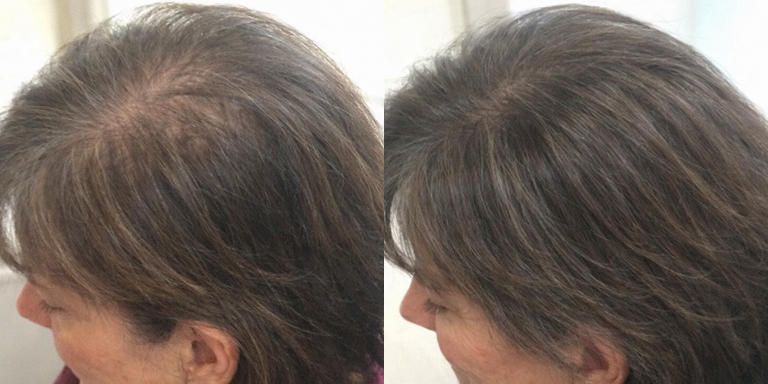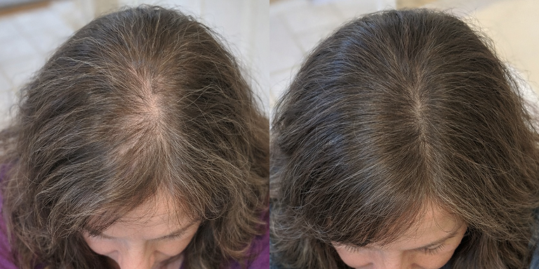 I began losing hair after menopause. I was looking for a way to make my hair healthier when I read about the laser cap. I was hesitant about such an expensive purchase, but as you can see from the before and after photos, it made a difference! (The photos are 4 months apart. ) I have been using my cap for 3 1/2 years now.