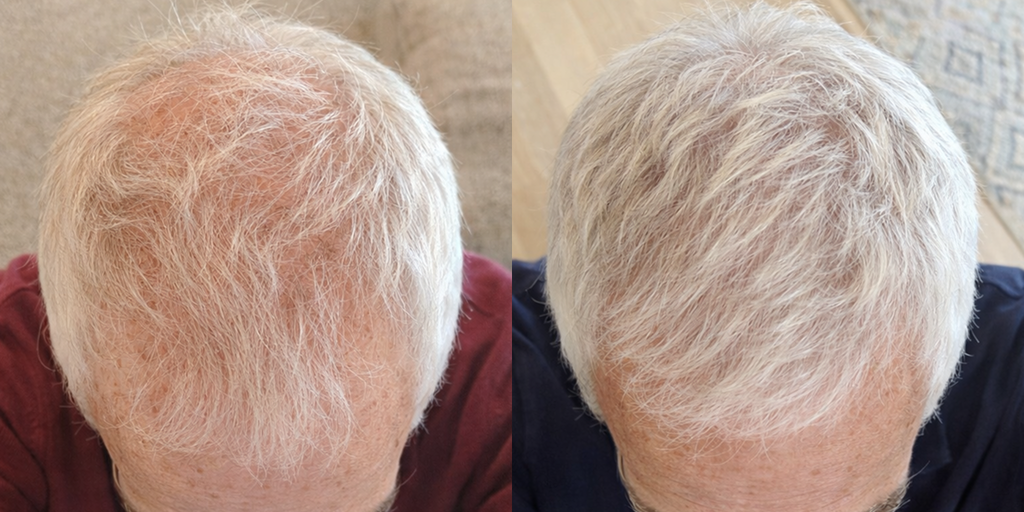 The laser cap definitely helped regrow hair over the balding spot on the crown of my head and on my thinning/receding front hairline! I also use the Kiierr shampoo, conditioner and vitamins. I highly recommend all Kiierr products!
