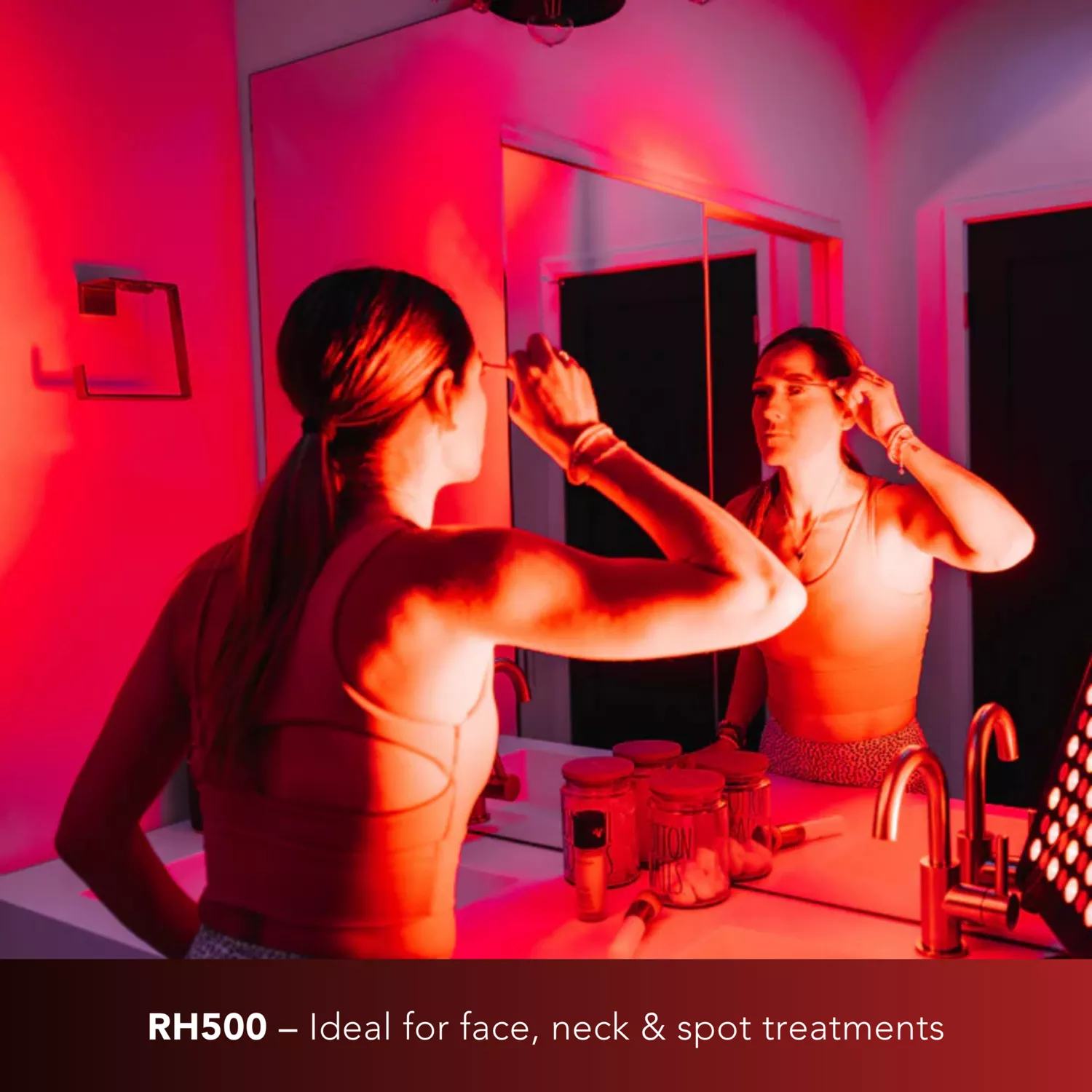A compact red light panel designed for targeted treatments. The RH300 is ideal for facial rejuvenation, neck care, and spot treatments on joints or small areas. Easy to store, travel with, and perfect for anyone starting their red light therapy journey.